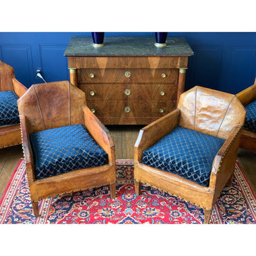 - A pair of vintage mid-century Beech wood Boucle wool fabric lounge chairs France