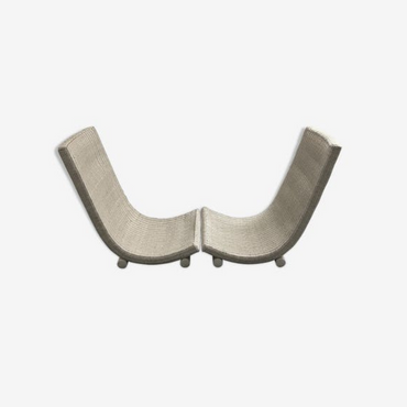 Club chair probably from the 30s, coming from a want mansion. Pretty patina, they are timeless and will easily match any style of landscaping. Some marks and patina of use visible in photos but in good general condition. Pillows as a seat that can be easily replaced by square fabric cushions. Total height 82cm. Seat height 44cm (with cushion) Seat height 30cm (no cushion) Total depth: about 70cm. Total width: 70cm.