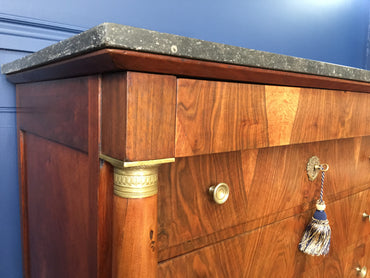 - Vintage 1800's French Empire Flame Mahogany Napoleonic Commode Black Marble top